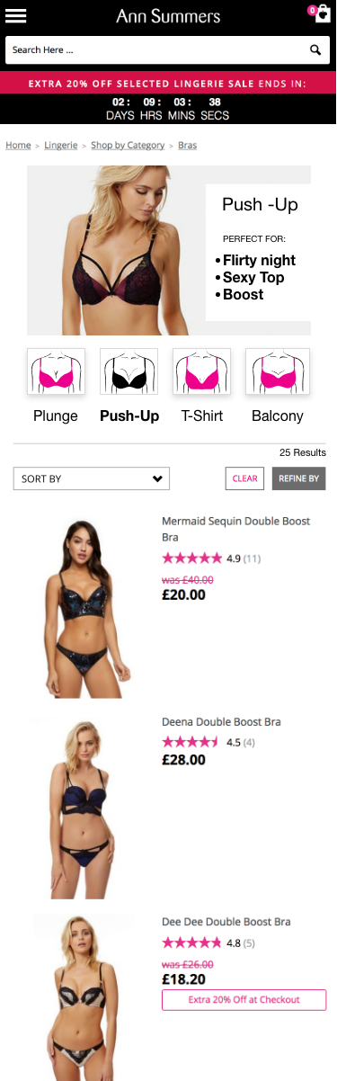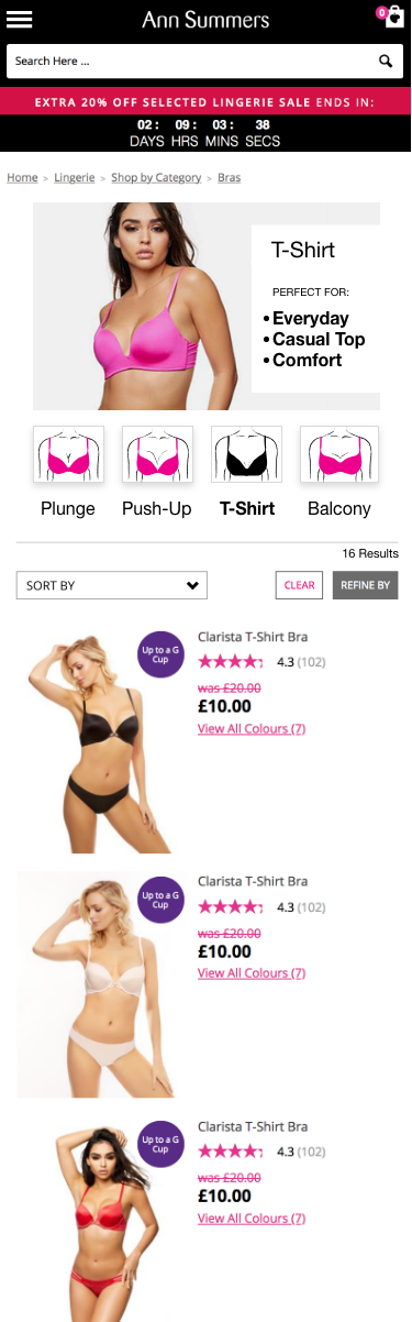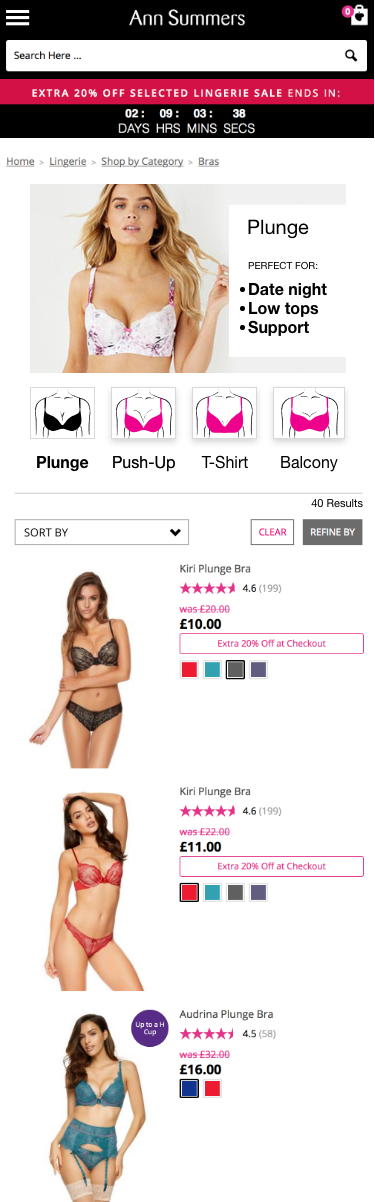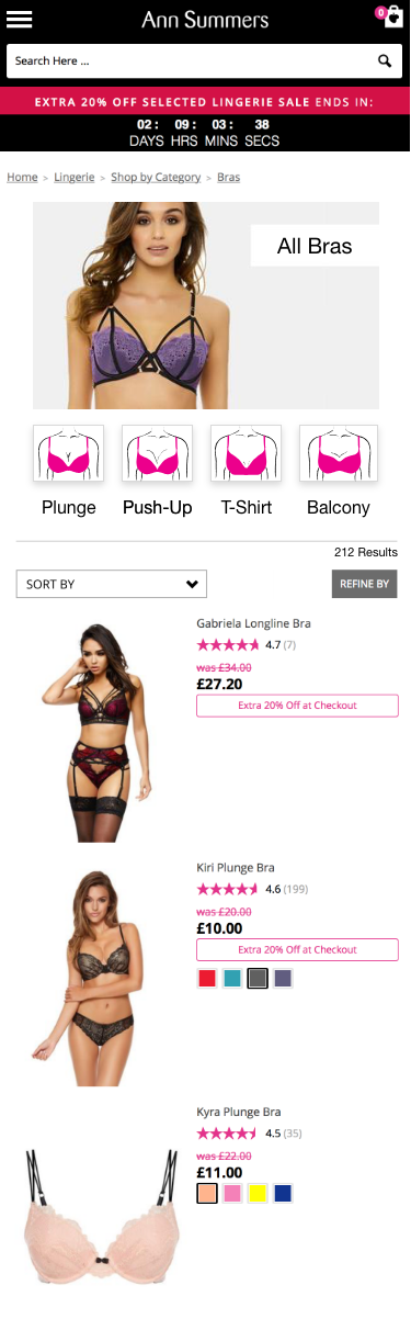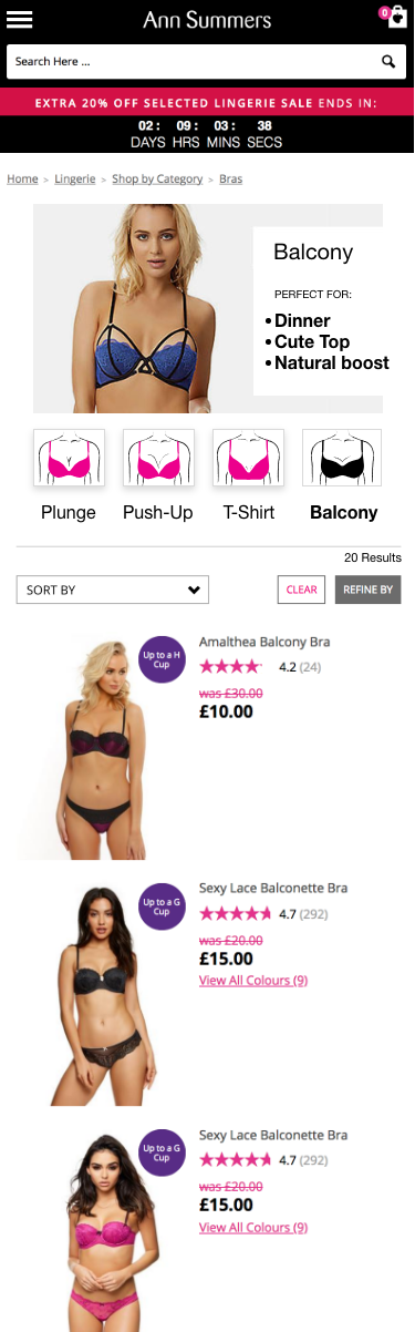 The Ann Summers Bra Filter narrows your search and make it easier for the customer to find what they are looking for quicker.